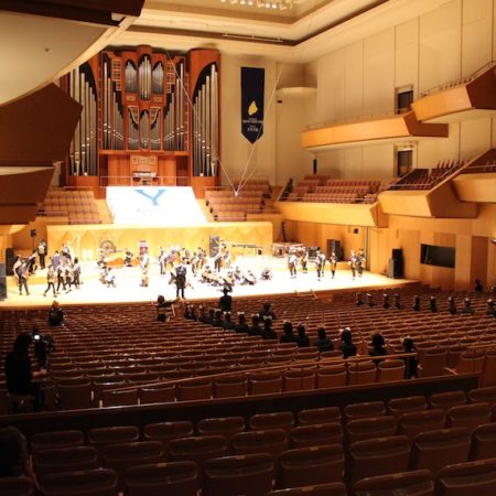 幕総オケ部は、2018年4月7日(土)、8日(日)の2日間、千葉トヨペット本社・中央店で開催された「桜まつり2018」においてアンサンブルコンサートを行ない、弦楽器や管楽器、打楽器などさまざまな楽器の組み合わせによるアンサンブルを披露しました。