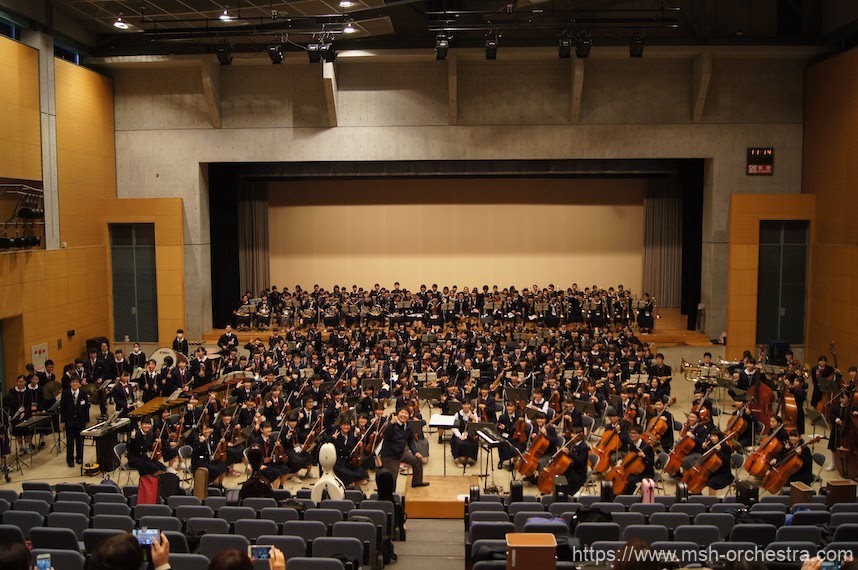 校内見学やパート練習を行なった後、参加者と幕総オケ部メンバー全員でクリスマスフェスティバルを大合奏。大勢のメンバーによる圧巻のクリスマスフェスティバルでクリスマスムードが一気に高まり、最後は幕総オケ部による心のこもったウェルカムコンサートで締めくくりました。