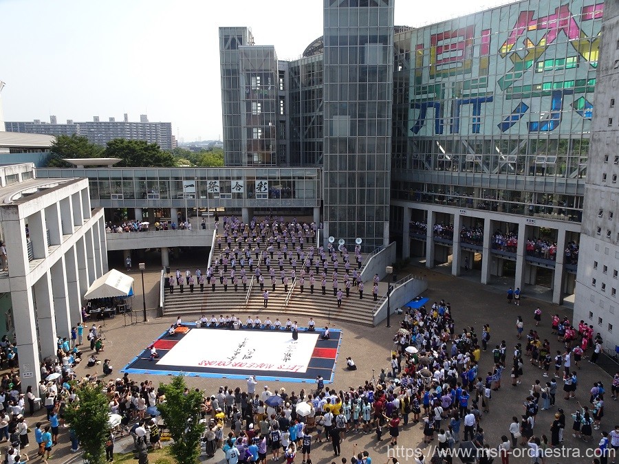 30度超えの真夏の太陽の下、まずは姫階段にて書道部と幕総オケ部のコラボオープニングからスタート!!