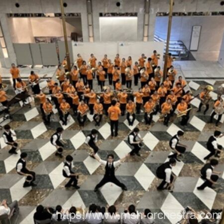 抜けるような青空の下、今回は管楽器の1年生による編成で、お馴染みのポップスメドレーや、吹奏楽の定番曲、おかあさんといっしょの人気曲を演奏し、秋の幕張の街を音楽で彩りました。