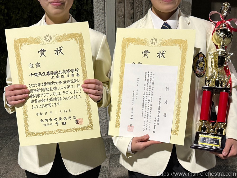 さらに、木管八重奏は東関東代表として、2026年3月21日(土)広島文化学園HBGホールにて行われる「第49回全日本アンサンブルコンテスト」出場の推薦をいただきました。