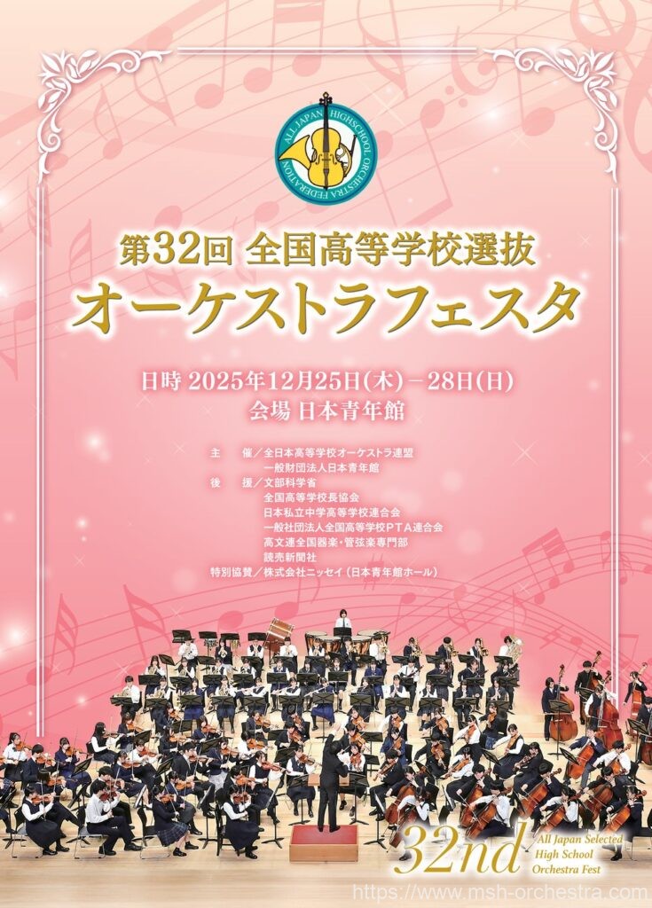 2025年12月28日(日)、幕総オケ部は日本青年館ホールにて行われる「第32回全国高等学校選抜オーケストラフェスタ」に出演いたします。