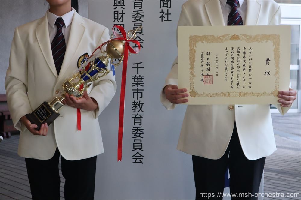 2024年8月11日(日)君津市民文化ホールにおいて、「第66回千葉県吹奏楽コンクール 高校生の部A部門本選大会」が開催され、幕総オケ部は朝日新聞社賞・教育長賞を受賞し、千葉県代表として東関東吹奏楽コンクールへの推薦をいただくことができました。