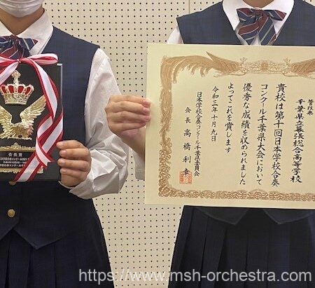 「シンフォニックオーケストラ部」ならではの管楽器・弦楽器メンバーで臨んだコンテストで最優秀グランプリ賞をいただけたことは、私たち幕総オケ部にとって大きな励みとなりました。