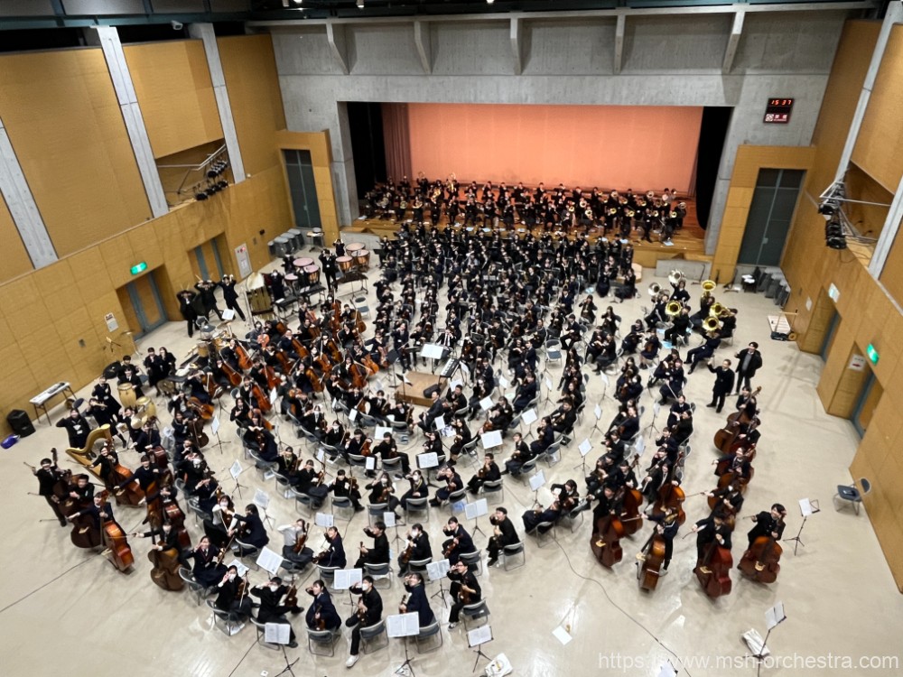 幕総オケ部はA日程の1日目に参加し、『管弦楽組曲第3番 BWV1063より第2曲「エール」(G線上のアリア)』と先日の日本学校合奏コンクール全国大会グランドコンテストで最優秀賞・文部科学大臣賞を受賞した『《ばらの騎士》組曲より』の2曲を披露しました。